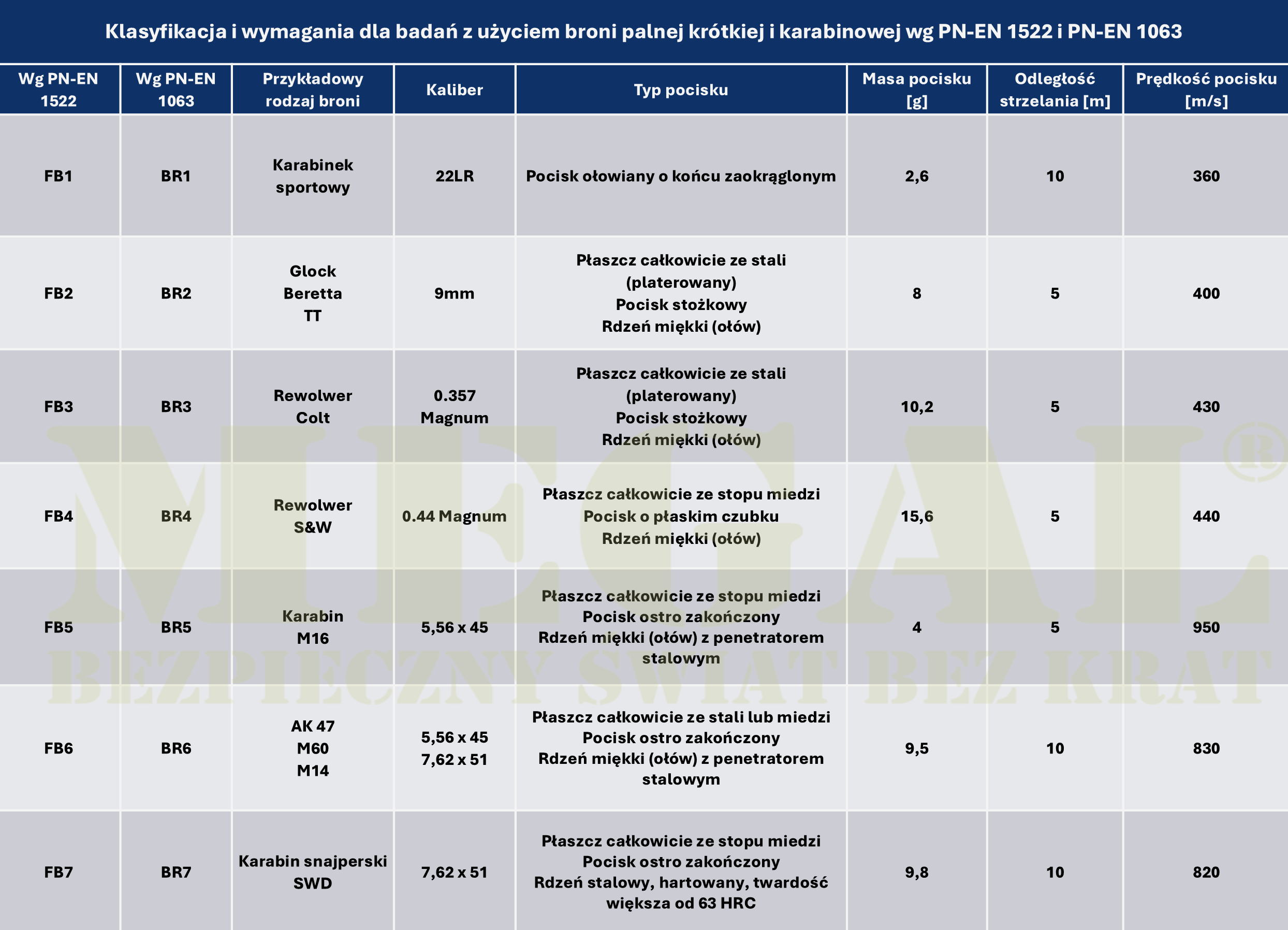 Szyby mogą spełniać warunki odporności więcej niż jednej grupy.